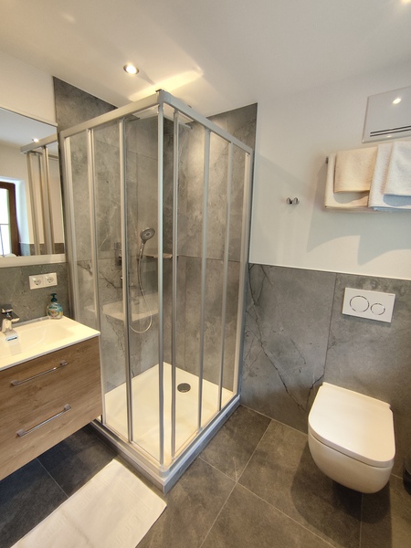 - einzelne Duschen haben einen Duschvorhang, eine Duschkabine oder Duschkabine und Regendusche. Falls Sie bestimmte Wünsche haben am besten telefonisch besprechen. Tel.: 08652/62227